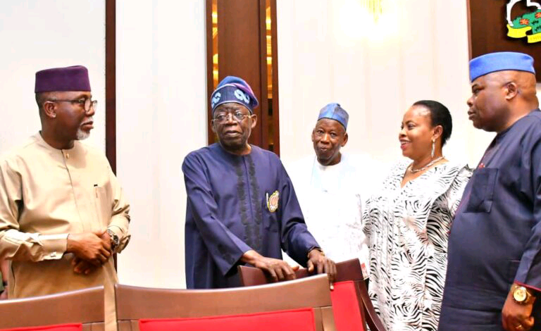 *Photo Caption: (L-R): Ondo State deputy gov., Lucky Aiyedatiwa, President Bola Ahmed Tinubu, Abdullahi Umar Ganduje, APC national chairman; Secretary to Ondo State Government, Princess Oladuni Odu and Speaker, Ondo State House of Assembly, Mr. Oladuni Olamide.