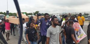 BREAKING: Bloodstained Nigerian flags, dummy coffins at #EndSARS memorial procession
