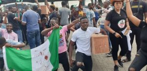 Youths in their numbers on Thursday morning showed up with dummy coffins and bloodstained Nigerian flags at Lekki toll gate in Lagos State to commemorate the second-year memorial of the #EndSARS protest shooting.