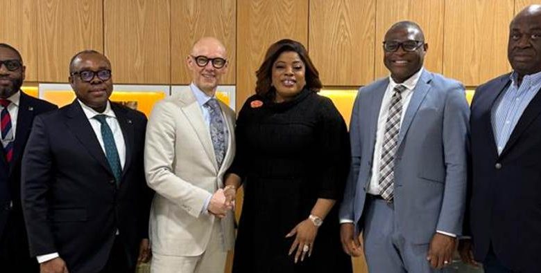 •Photo Caption (L-R): Mr. Kencho Omojafor, Head, Aviation Desk, Fidelity Bank Plc; Mr. Stanley Amuchie, Executive Director/Chief Operations and Information Officer, Fidelity Bank Plc; Mr. Christian Hatje, Managing Director Business Aviation AFG; Dr. Nneka Onyeali-Ikpe, Managing Director/Chief Executive Officer, Fidelity Bank Plc; Mr. Shiekuma Gemade, Chief Operating Officer, AFG; and Mr. Patrick Azi, Aviation Consultant and Managing Director, 3D Hitec Ltd; at a meeting at the Fidelity Bank headquarters recently.