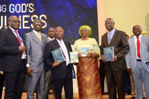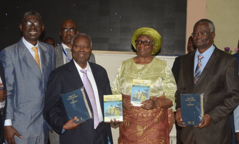 *Pastor W. F. Kumuyi (3rd left) with the wife and other leaders of ministry at the launch of the Deeper Life Bible and 50th Anniversary book.