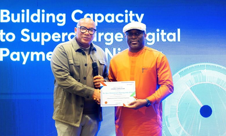 *Photo Caption: Mitchell Elegbe, Founder and Group Managing Director, Interswitch Group presents a Certificate of Participation to Rt. Hon. Emmanuel Ukpong-Udo (PhD), Chairman of the House Committee on Digital Economy, Federal House of Representatives at the 2-day Capacity Building Workshop hosted by Interswitch Group for the Honourable members in Lagos