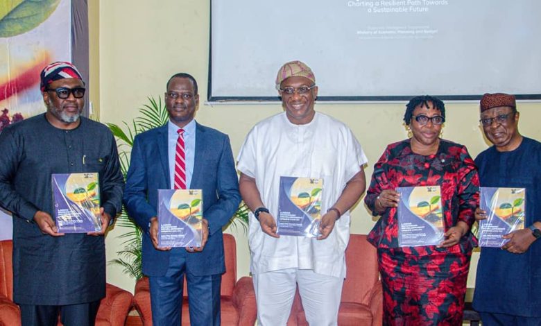•Photo Caption (L-R): Commissioner for Economic Planning and Budget, MEPB Lagos State, Mr. Ope Goerge; Chairman, Presidential Tax Reform Committee, Mr. Taiwo Oyedele; Deputy Chief of Staff to Governor of Lagos State, Mr. Sam Egube; Permanent Secretary, MEPB, Mrs. Olayinka Ojo and President of the Nigerian Economic Society (NES), Prof. Adeola Adenikinju during the presentation of 2025 Lagos Economic Development Update themed: Lagos Economic Outlook: Charting a Resilient Path Towards a Sustainable Future, held at the Protea-Select Hotel, CBD, Ikeja, on Wednesday.