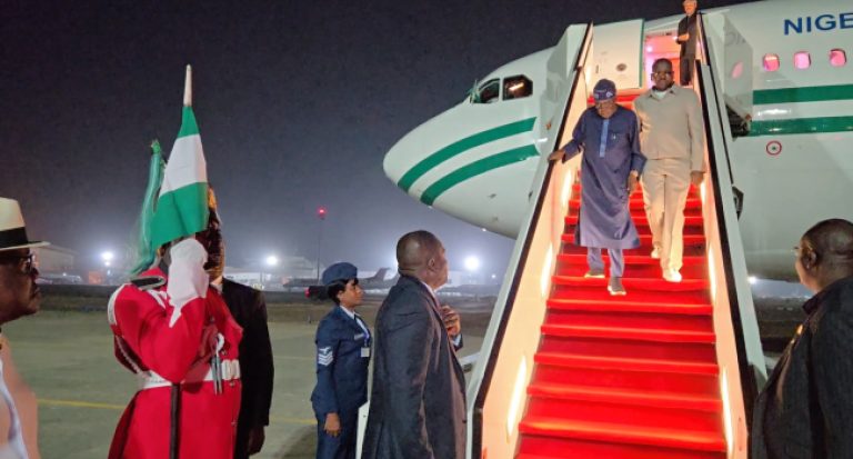 The presidency confirmed Tinubu’s arrival in a brief notice issued to state house correspondents on Saturday evening.